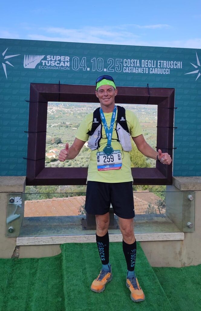 Alla partenza della SuperTuscan Ecomarathon (23 km e circa 400 metri di dislivello positivo), Gabriele ha mostrato subito grande solidità e spirito agonistico, fermando il cronometro a 2h02’04”. Un tempo che gli è valso il 9° posto di categoria e un posto nella top 10 assoluta.